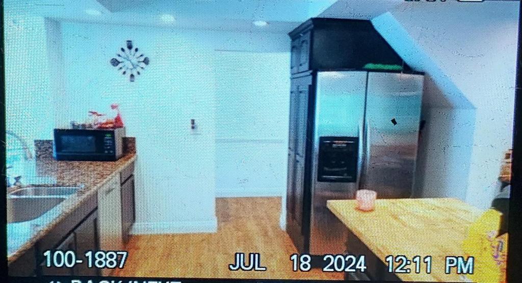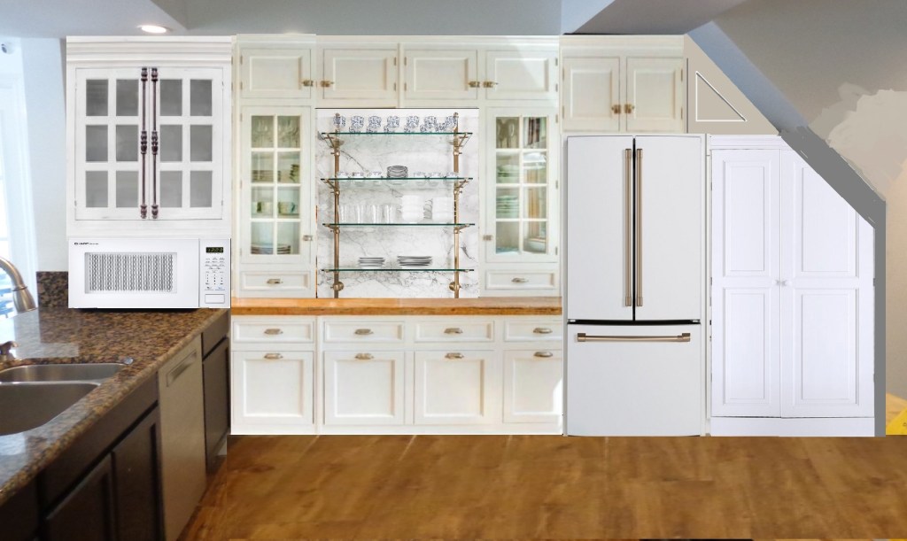 so this is a shot of a wall that has an opening that i will close up to make more room for cabinets. There currently is a monster refrigerator taking up a lot of space and is not counter depth. It is just Hubby and I at this point and i don’t need a big fridge. I’m more concerned about it’s look.