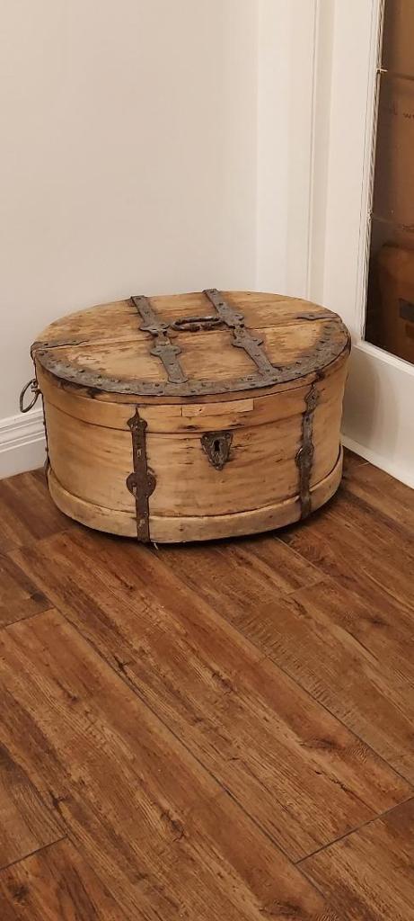 and a vintage wood box that was used on carriages to store things. The hardware is so nice.