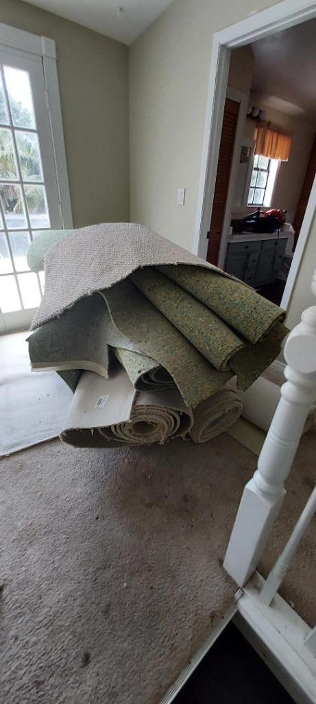 Our first goal was to remove all the gross carpeting that was upstairs and in our bedroom.