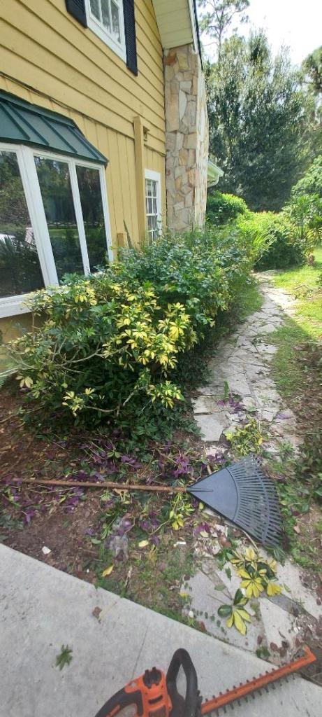 out came the chain saw and electric saw. there is a very invasive vine called bittermelon. It smells absolutely disgusting and chokes everything it grows on. I removed a lot of it and found some cute little trees among the mess.