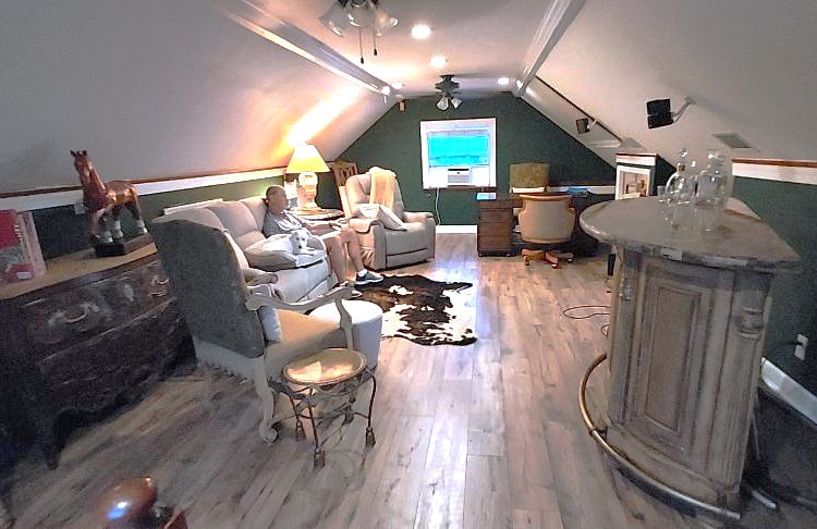 The man cave is a very big space. it is over our two car garage which is about 25′ x 25′. Hubby is making it his office and a bar/tV room.