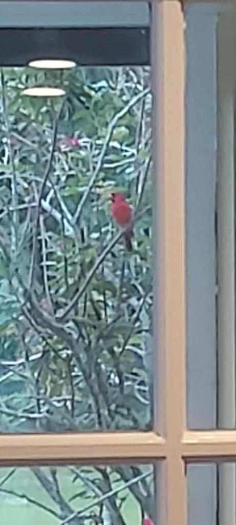 and so are my inlaws who keep coming to visit by a cardinal who comes to a tree off our lanai.
