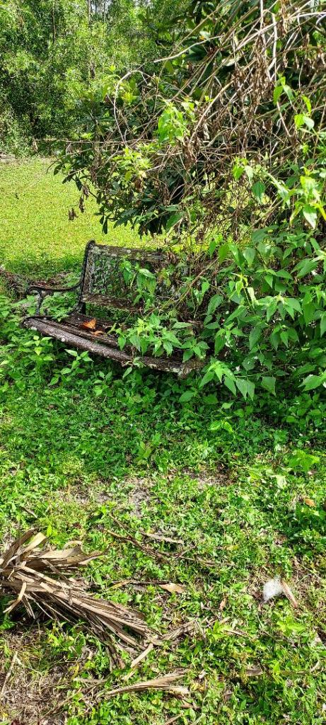 Behind the bananas was another big mess of brush and when i got closer i realized an old bench was all covered in vines.